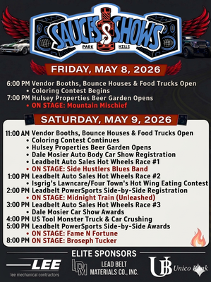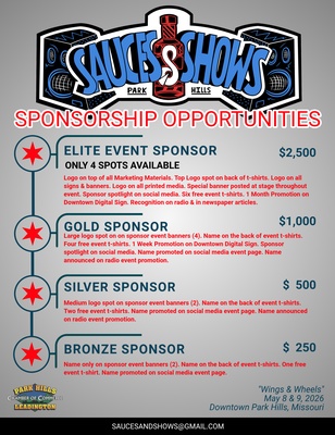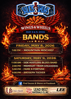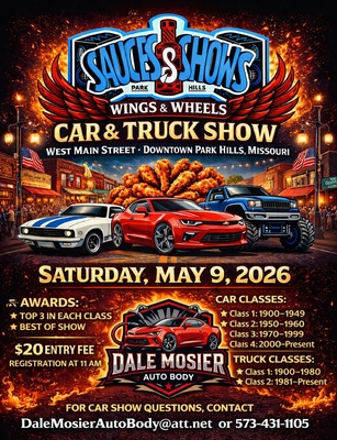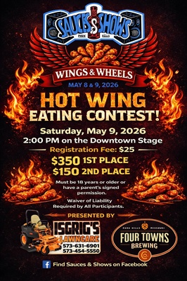 Get ready for a sizzling weekend of fun, food, and fantastic entertainment! The Park Hills - Leadington Chamber of Commerce is thrilled to announce that planning is underway for the 2026 Sauces & Shows: Wings & Wheels event, scheduled for May 8th and 9th, 2026. The event kicks off at 6:00 PM on Friday, the 8th and closes at 10:00 PM, then it reopens for a full 11:00 AM to 10:00 PM on Saturday, the 9th!