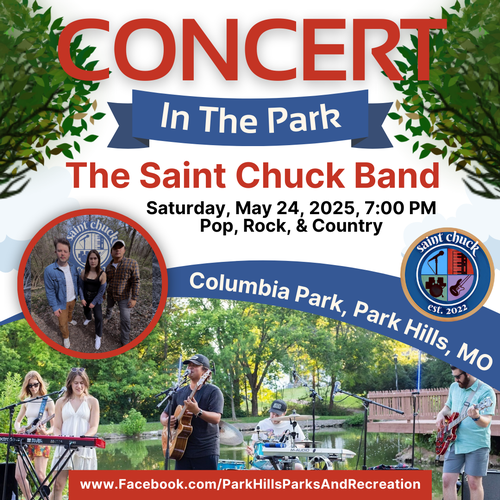 Get ready for an unforgettable evening of live music with the Saint Chuck Band on Saturday, May 24, 2025, at 7 p.m. at the Twin Oaks Amphitheater in Columbia Park!